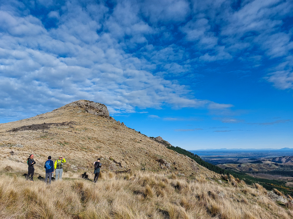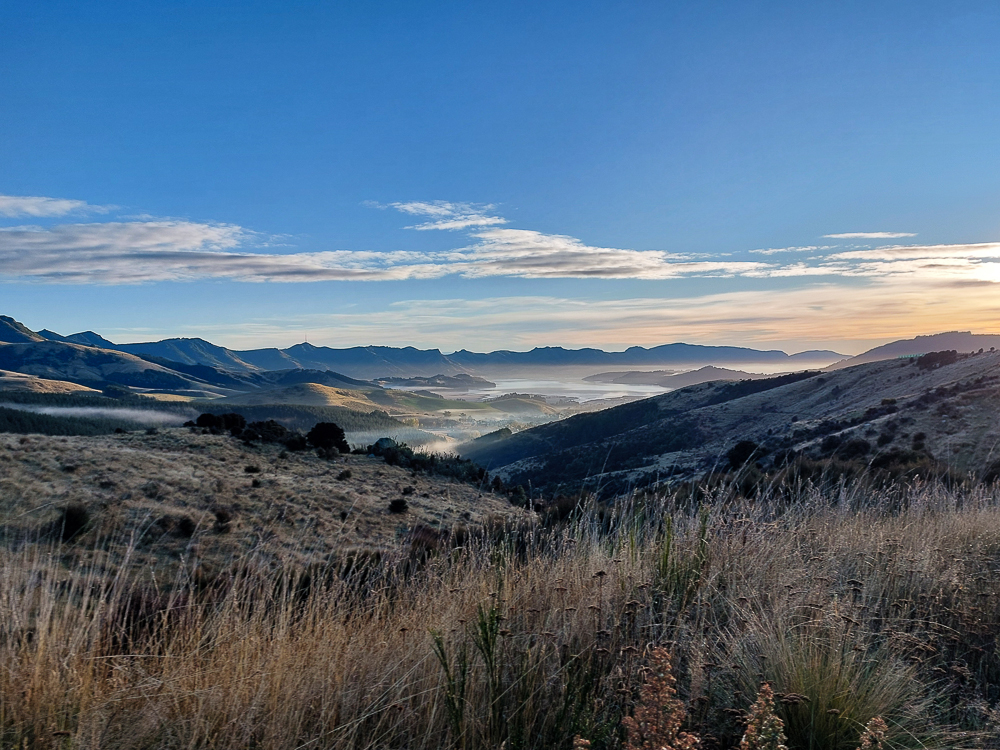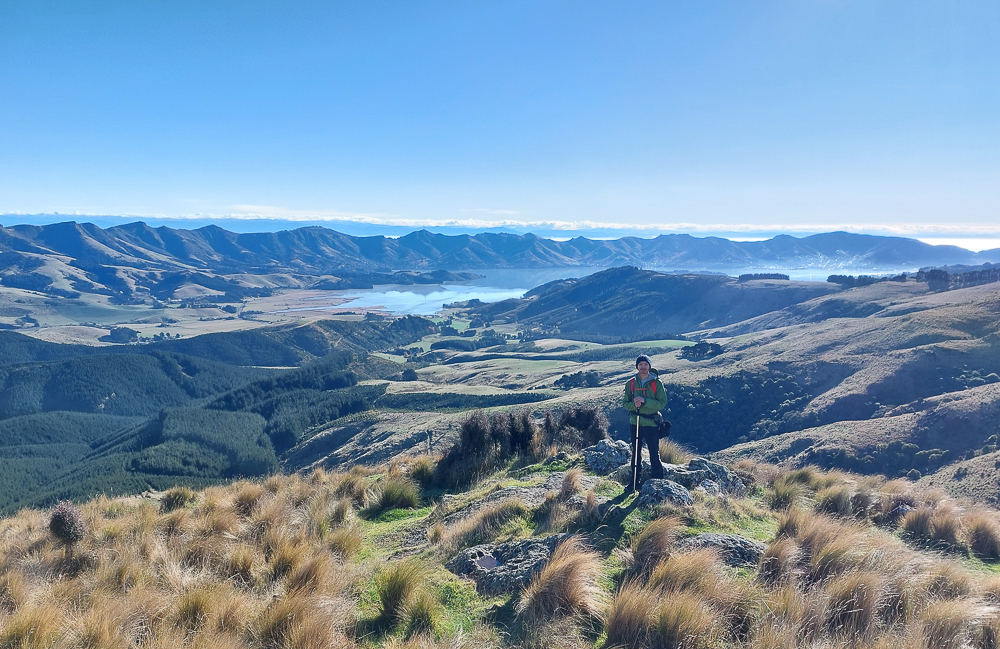 Behind me is the Port Hills. Below it is the bay, obscured by another hill (I'm unsure what hill it is).