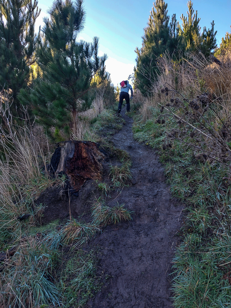 The type of trail that the group had to traverse. It rained hard the night before, and it was almost winter, so the ground was soggy and slippery.